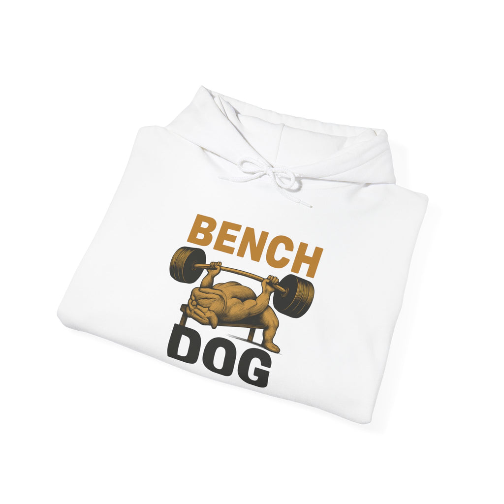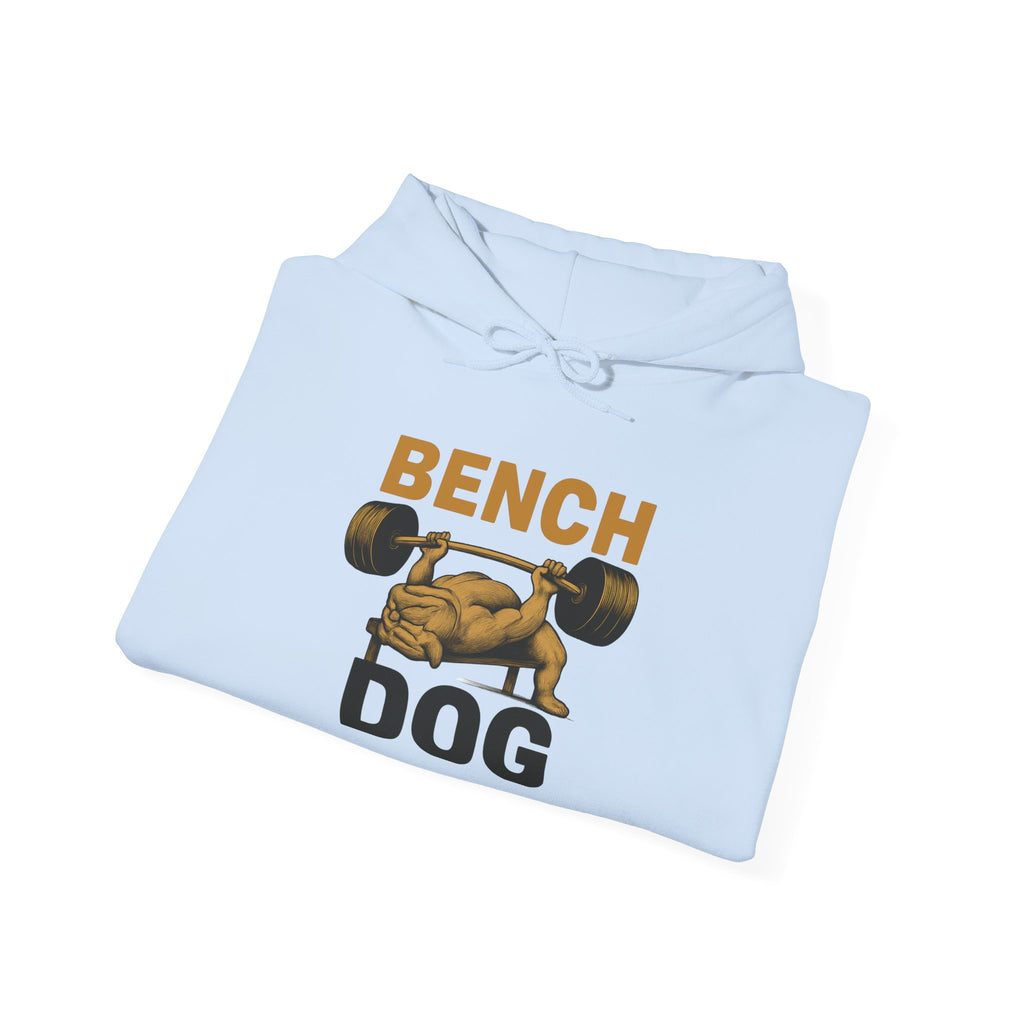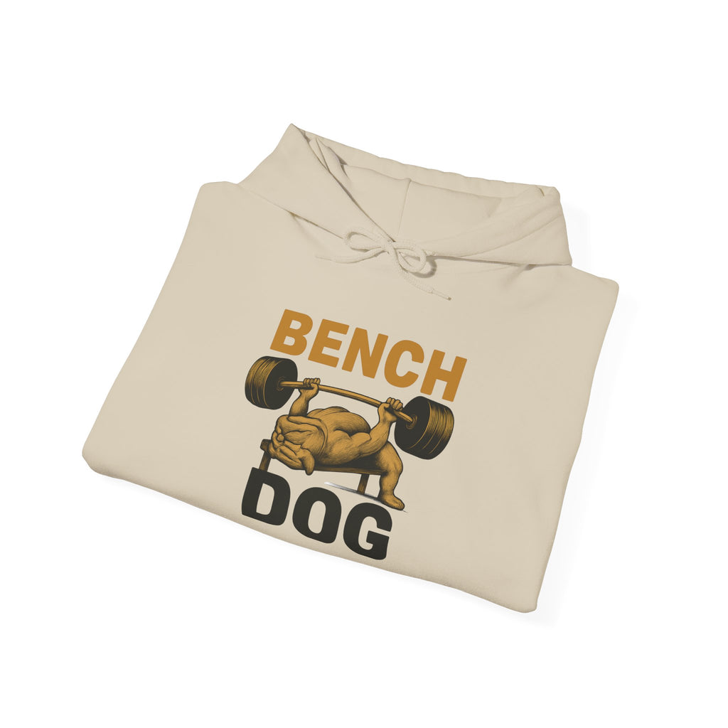 The Rugged Dog Mom Hoodie lets you own your strength and your pup pride at the same time. Featuring a bold Bench Dog graphic of a dog benching a serious barbell, this funny dog mom hoodie adds a wink to your workout style. Perfect for dog moms, dog dads, and dedicated pet aunts who crush chest day.