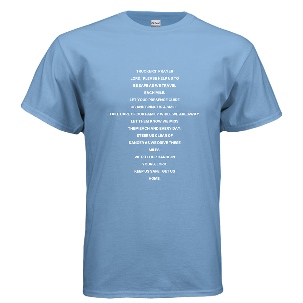 Why You'll Love This Trucker's Prayer T-Shirt: Bold Trucker's Prayer graphic for truck drivers, diesel fans, and anyone who lives by faith on the open road. Perfect faith gift for truck drivers, long-haul drivers, and anyone who keeps America moving mile after mile. Great for everyday wear on and off the road, gifting to the trucker in your life, and wearing your faith with pride. Classic Gildan G500 fit that's soft and broken in from the first wear. Made with sustainably and fairly grown USA cotton.